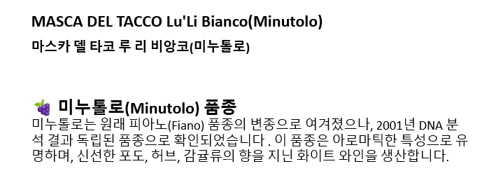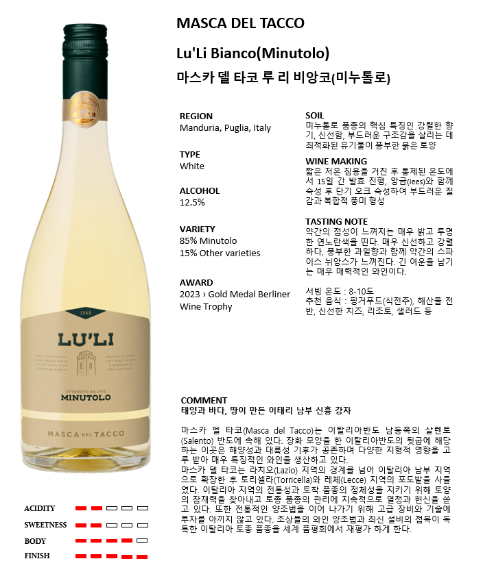 마스카 델 타코 루 리 비앙코(미누톨로) *12(이탈리아/드라이/화이트)