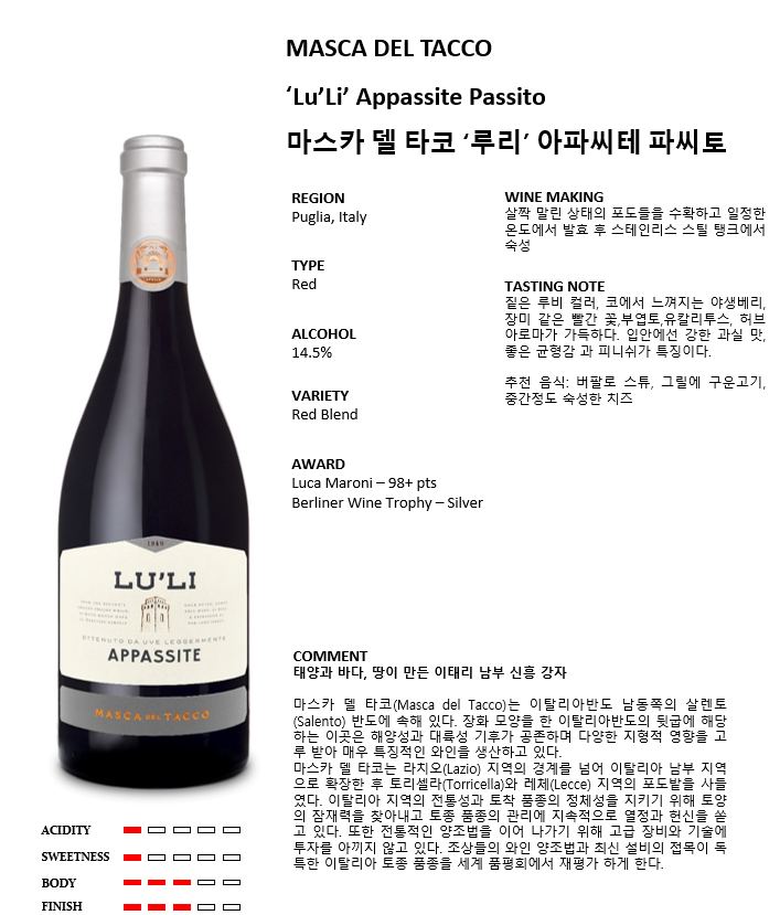 마스카 델 타코 '루리' 아파시테 파씨토 *12(이탈리아/드라이/레드)