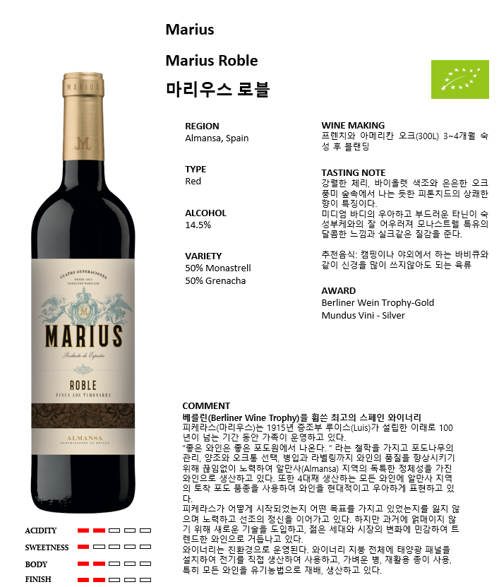 마리우스 로블*12(스페인/드라이/레드)