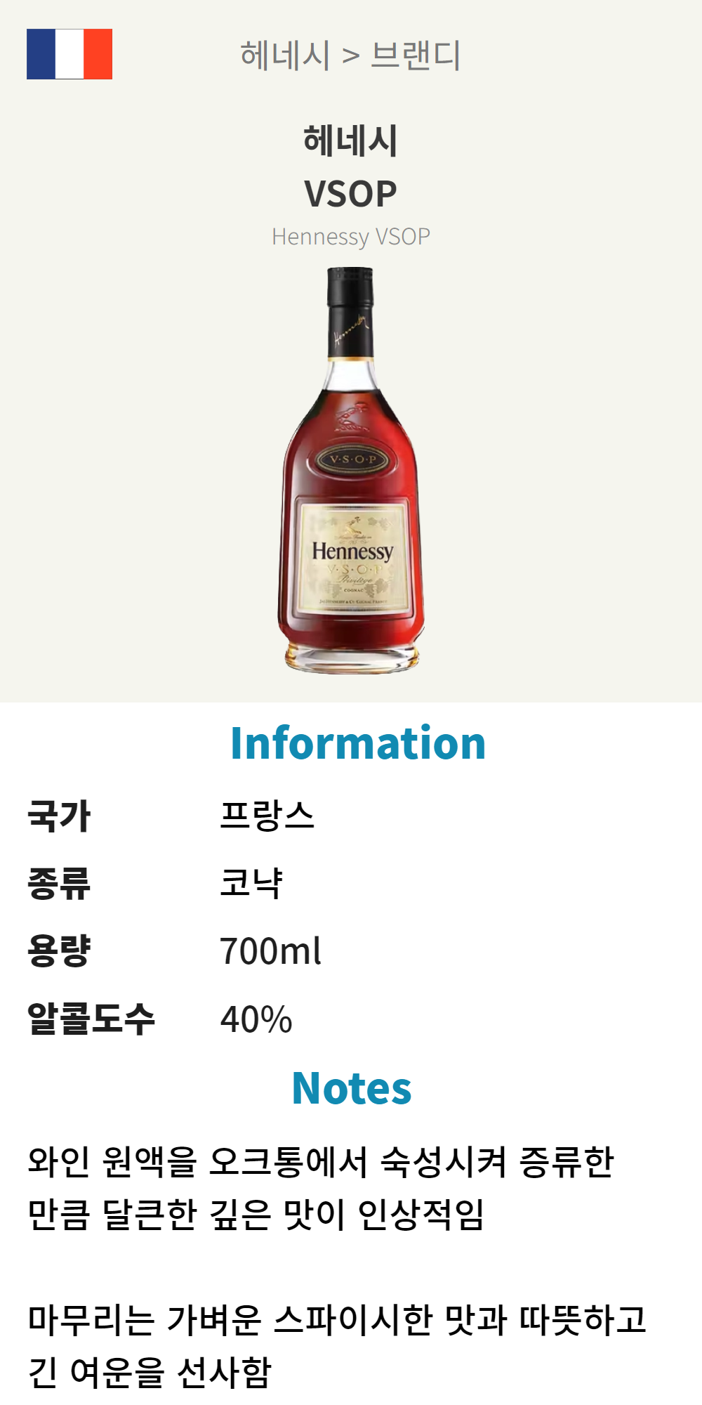 헤네시 vsop 코냑 (프랑스/코냑/700ml/가정)