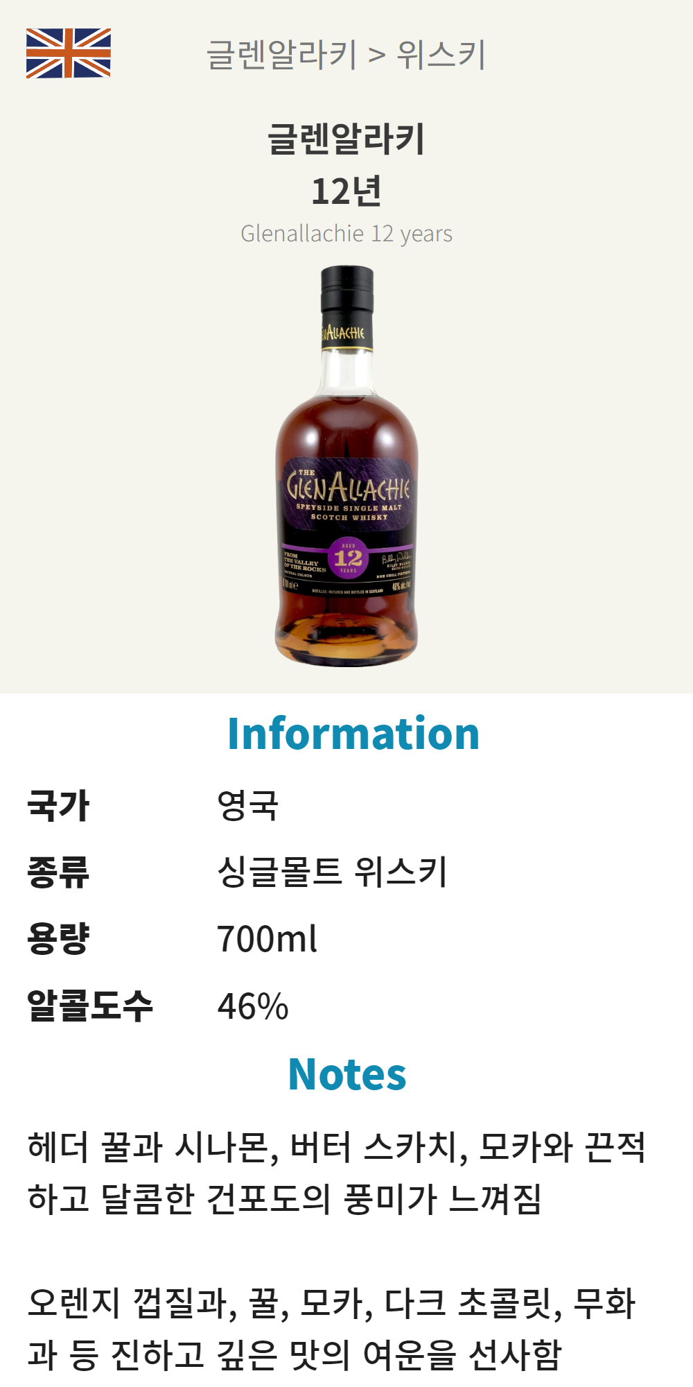 글렌알라키 12년 (영국/싱글몰트 위스키/700ml/유흥)