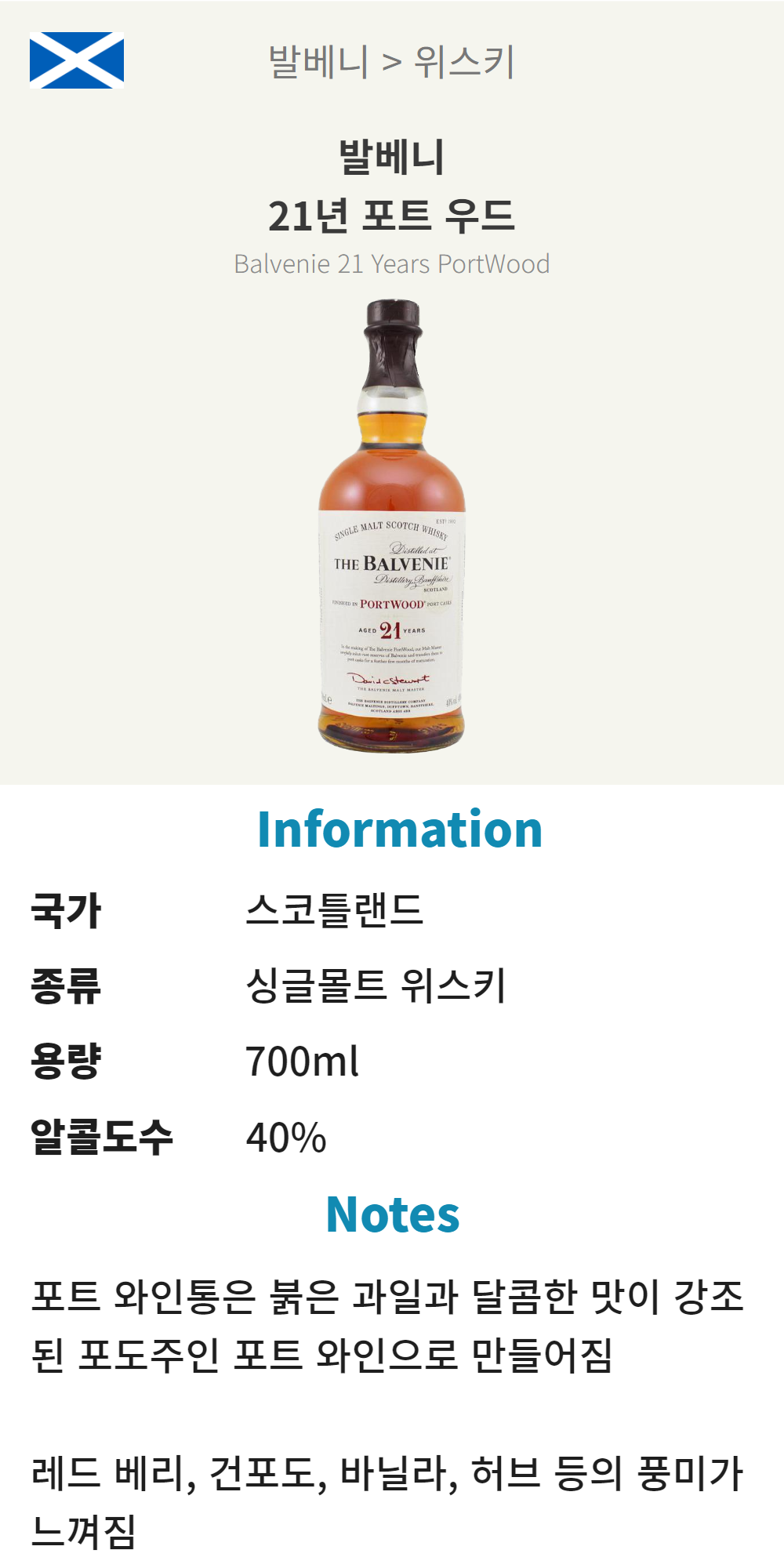 발베니 21년 포트우드 (스코틀랜드/ 싱글몰트 위스키/700ml/유흥)