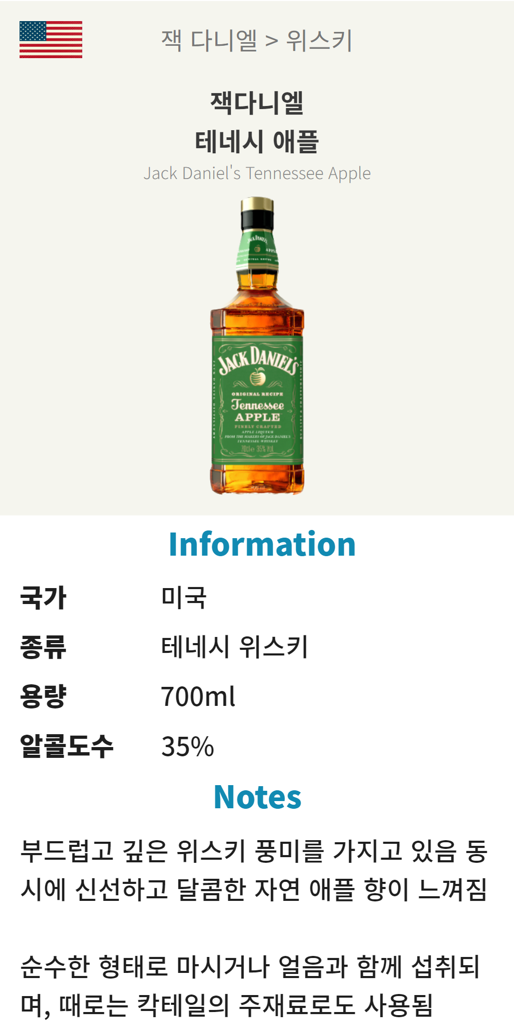 잭다니엘 애플 (미국/테네시 위스키/700ml/유흥)